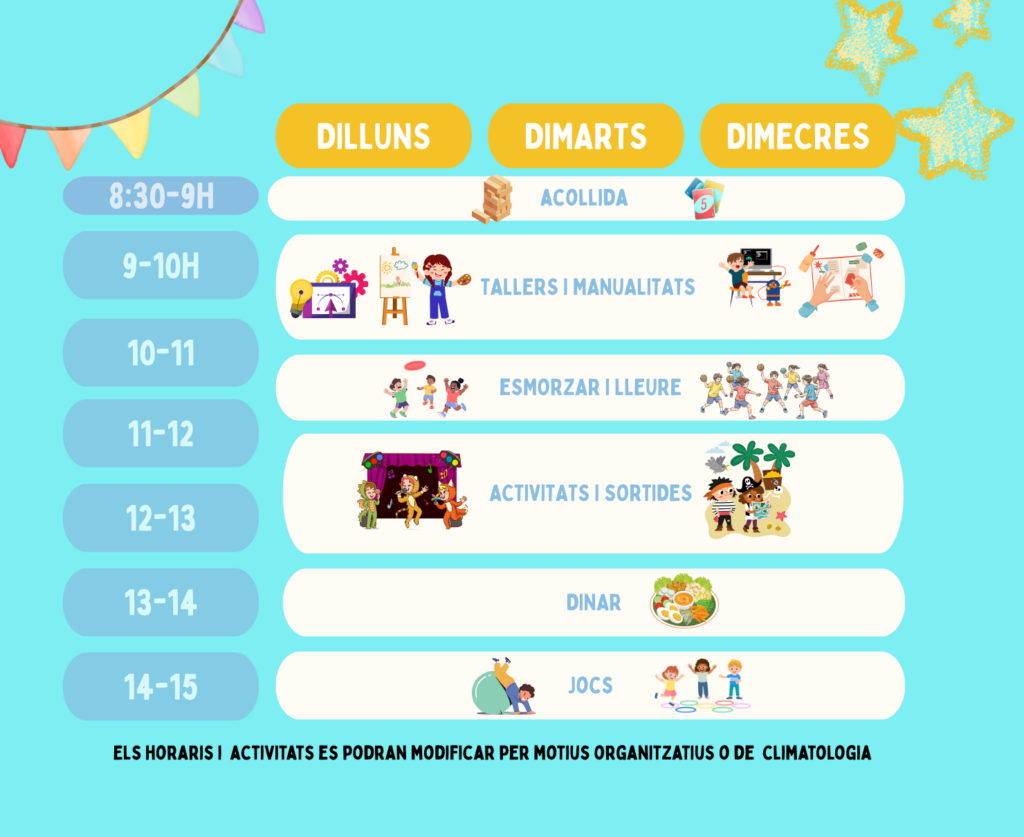 Les tarifes inclouen: sortides per la ciutat, i tot el material per a les activitats i les manualitats.